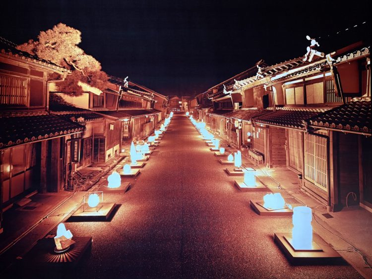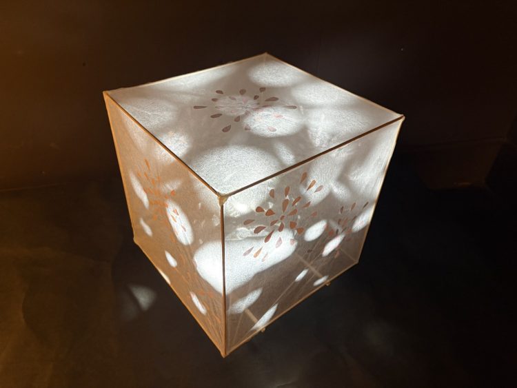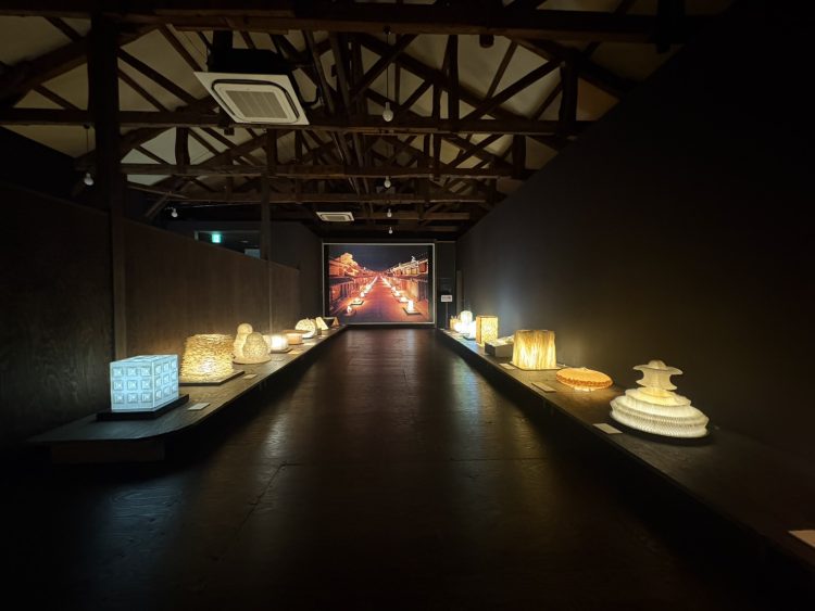屋外では、風に揺れる木々の影や、地面の起状、周囲の建物などが和紙のあかりと重なり合い、光と影の輪郭が常に変化します。