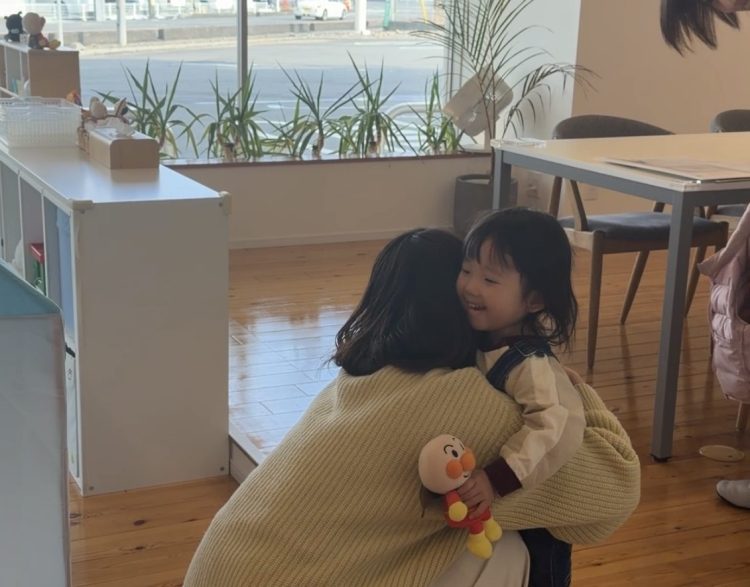 キッズスペースまでタタっとかけて来て保育士にギューっと