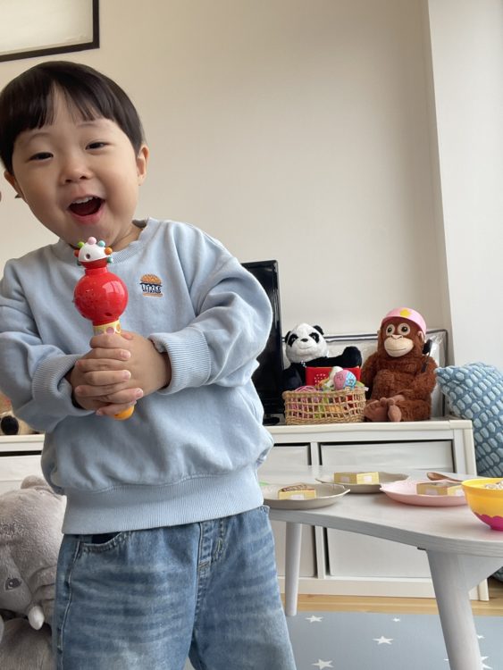 音が鳴るおもちゃから音楽を流して