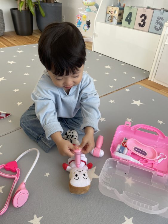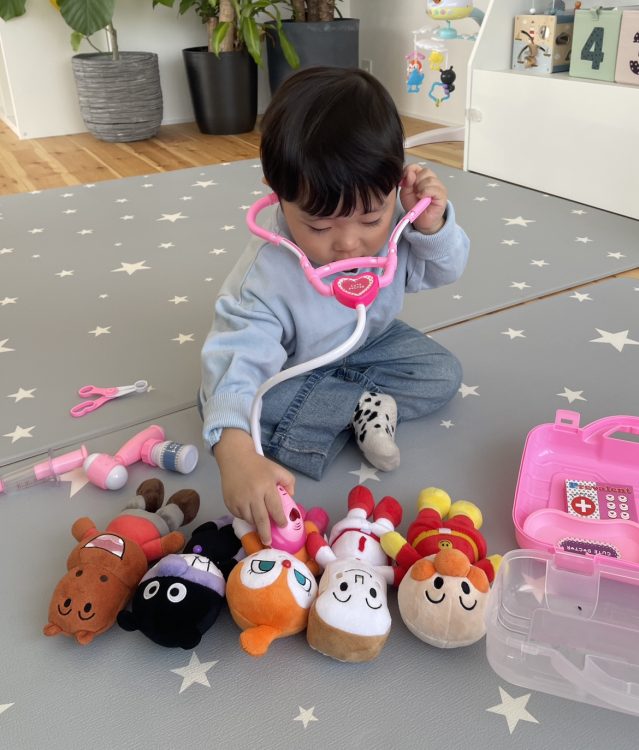 お医者さんになりきる姿は