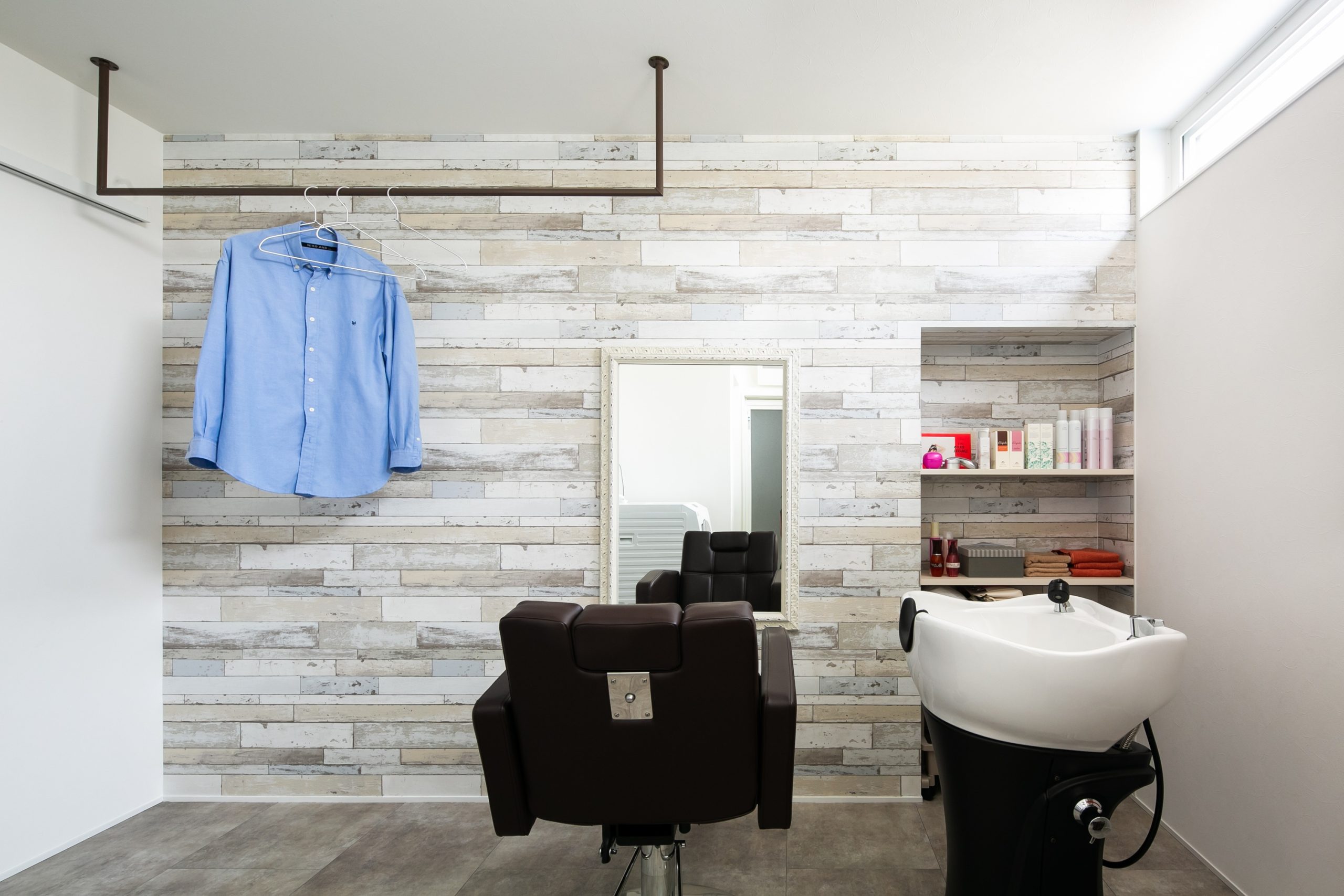 アイアンバーもブラウン系の色にすることで柔らかい雰囲気に仕上がった。