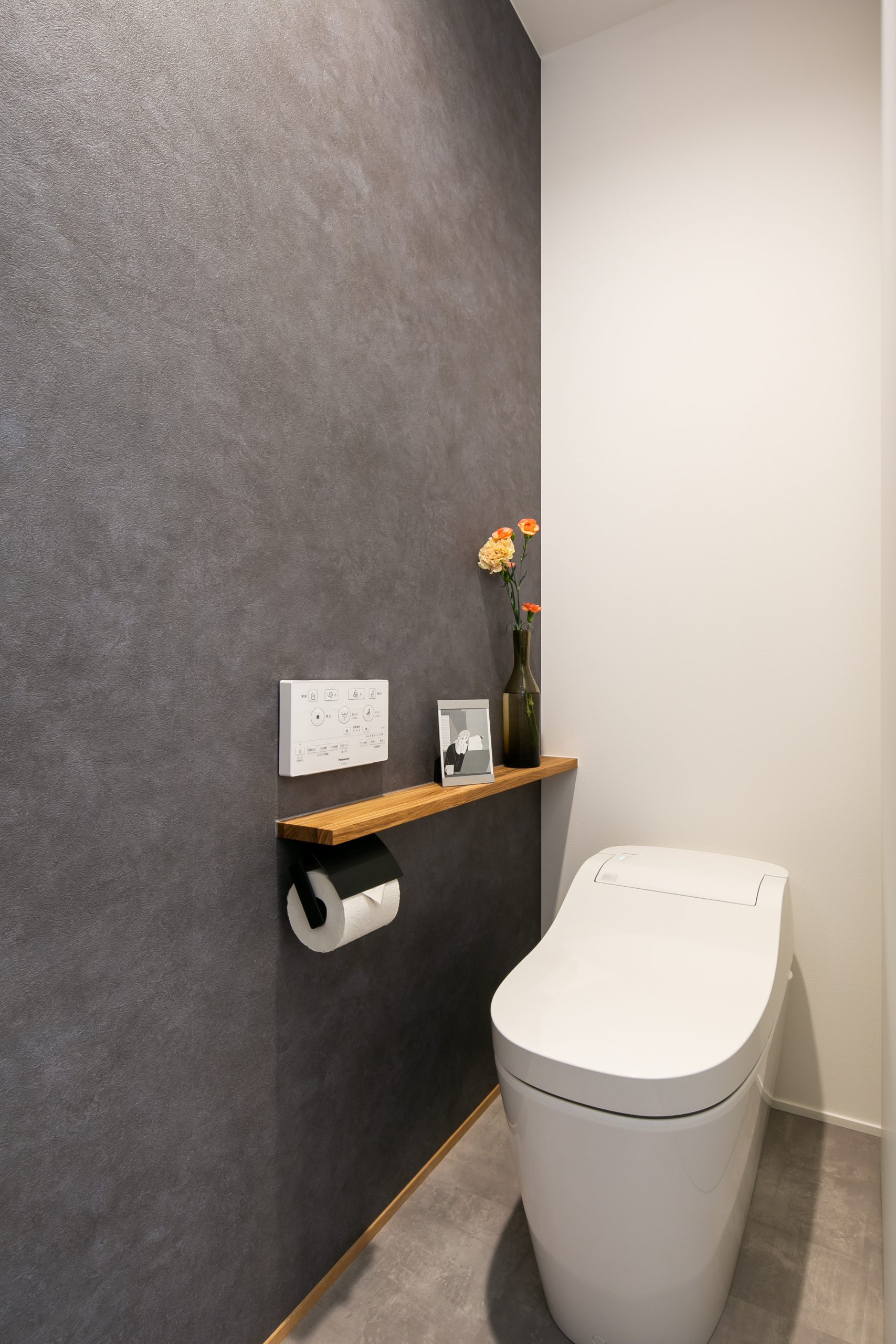 ニッチの収納を正面に設け、トイレ用品をすぐ仕舞えるように設計。
