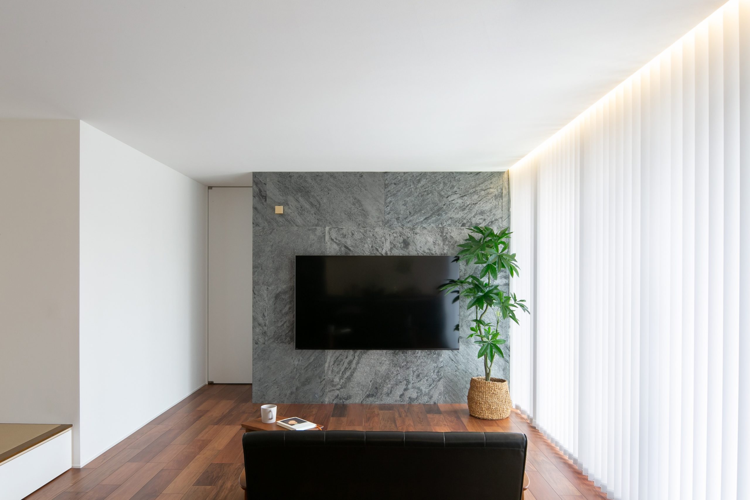 テレビ背面には天然石を使用し、高級感溢れる空間に。