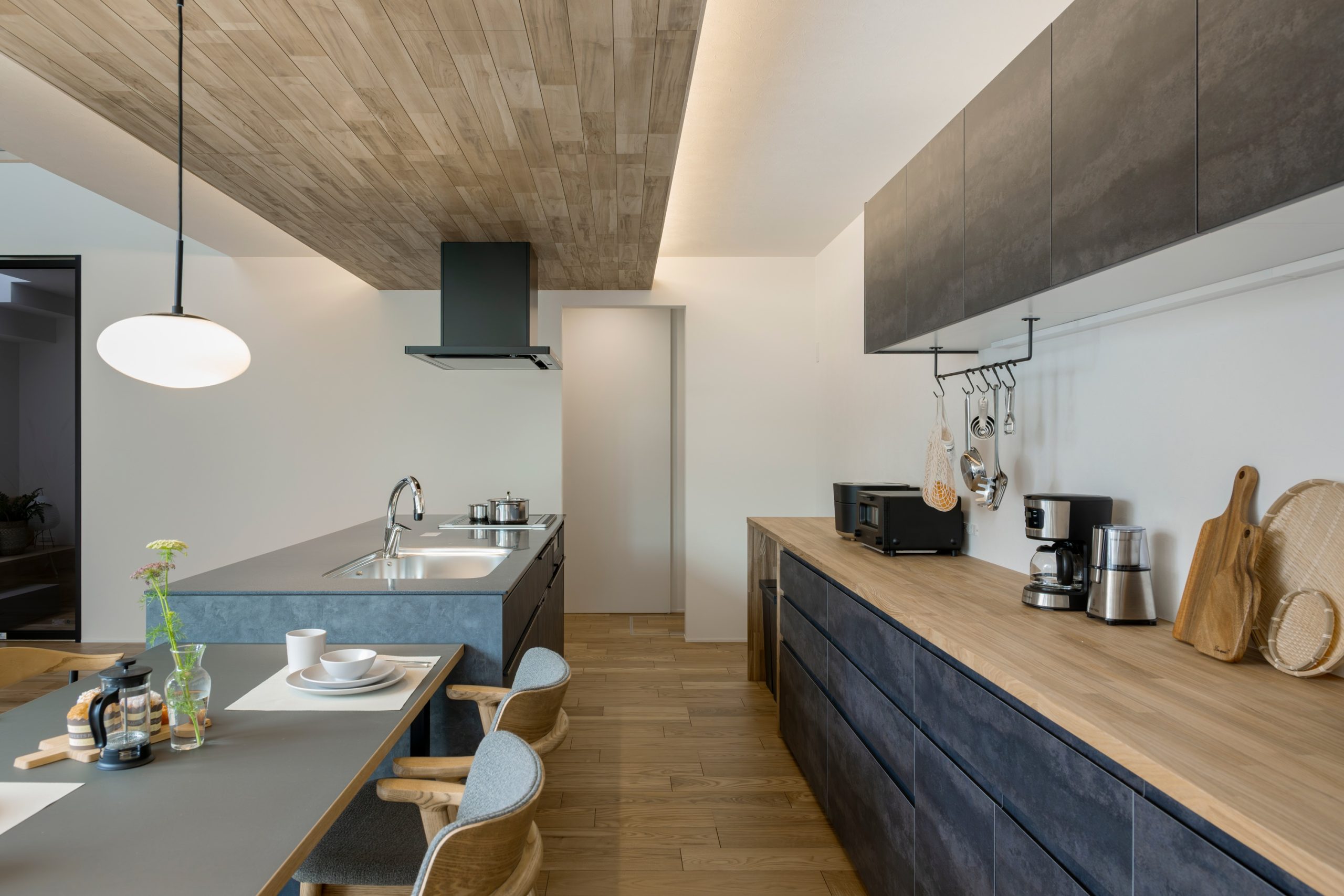 かっこいいテイストに合わせて黒と木目で仕上げた。
